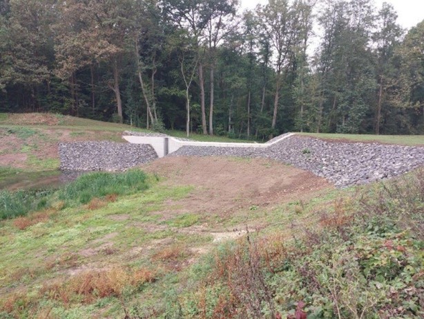 Jednalo se o rekonstrukci stávající vodní nádrže – v době před opravou bezvodé. V rámci stavebních prací došlo k odtěžení sedimentu ze dna nádrže, byla opravena železobetonová přelivná zeď s požerákem, zasanováno odpadní potrubí tvrzeným rukávcem a opraveno odpadní koryto pod hrází. Dále byl zkapacitněn bezpečnostní přeliv a navýšena koruna hráze na úroveň 213,00 m n. m. Odtěžení sedimentu bylo navrženo tak, aby na nátoku do nádrže vzniklo litorální pásmo – plocha s hloubkou do 0,8 m jako stanoviště pro vodní živočichy. Byl odtěžen sediment o celkovém objemu 4 842,32 m3.